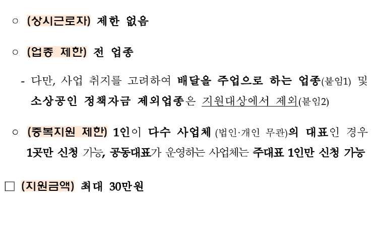 | 소상공인 및 자영업자 | 사업자등록증 보유 필수 |