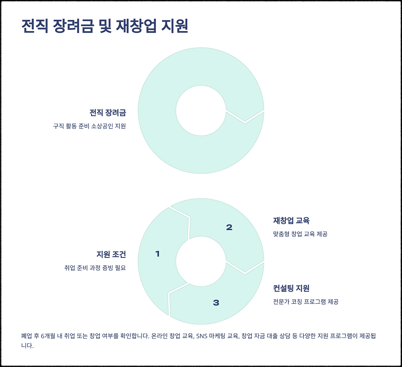 폐업 이후에도 재취업 또는 재창업을 위한 실질적인 지원을 받을 수 있도록 구성되어 있습니다.