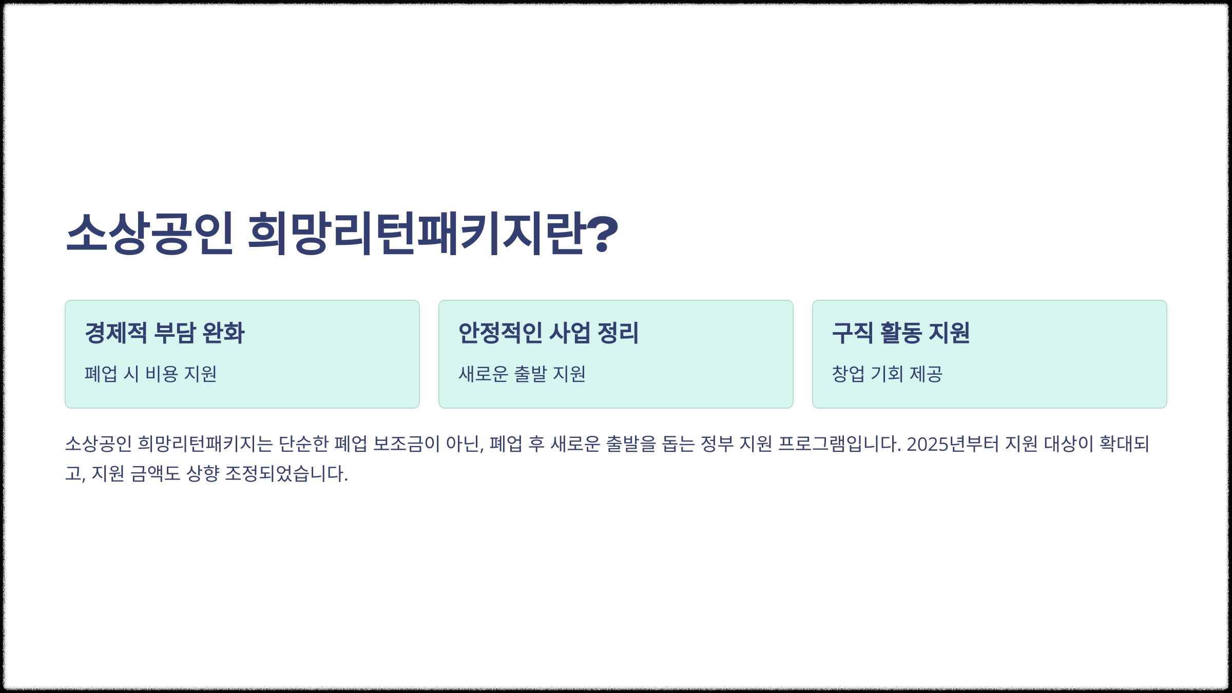 소상공인 희망리턴패키지는 단순한 폐업 보조금이 아니라, 폐업 후 새로운 출발을 돕는 정부 지원 프로그램입니다.